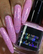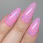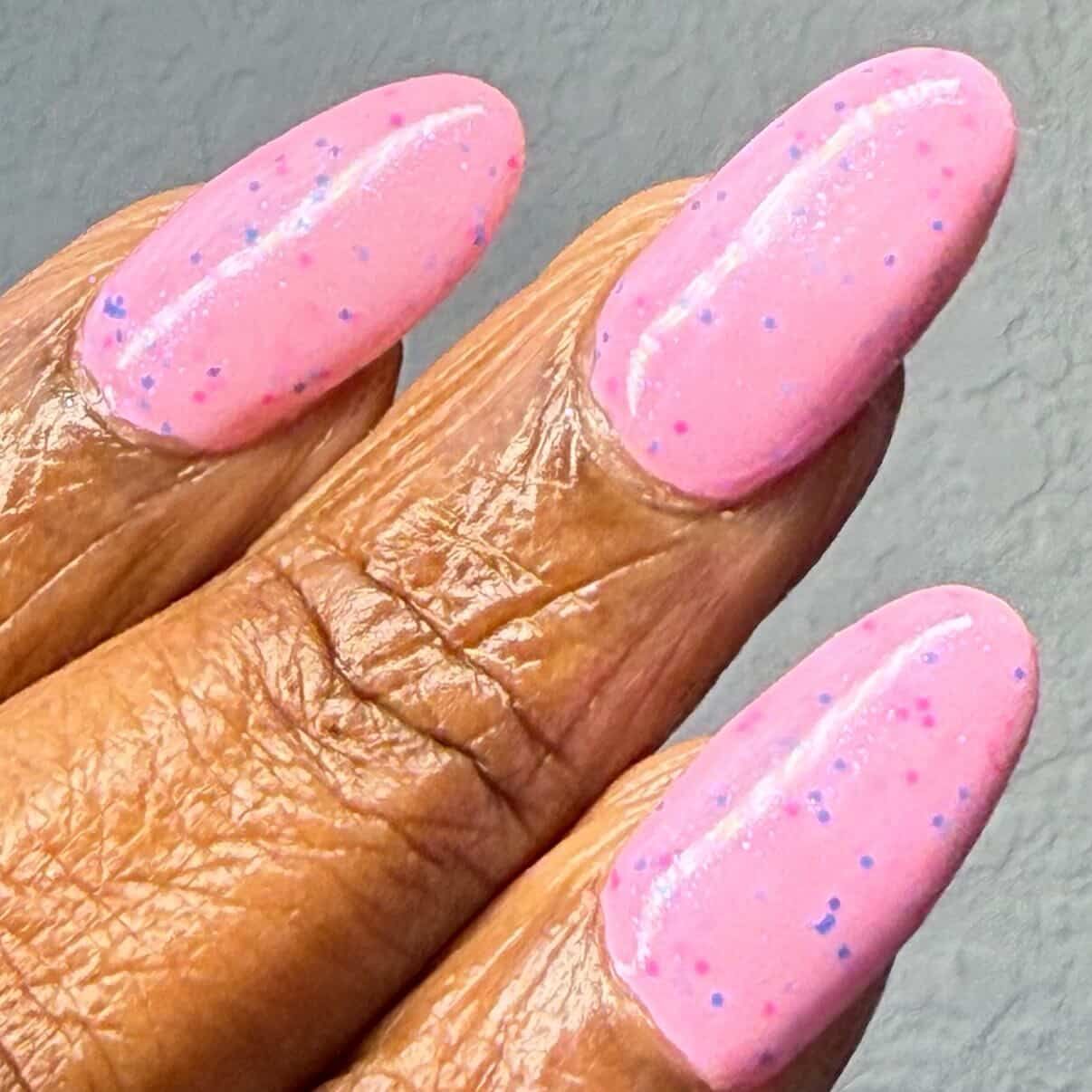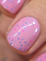 This polish is a baby pink polish with blue/purple shimmer and neon pink and blue glitters.