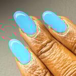 This polish is a robin egg blue with some tiny gold particle shimmer.